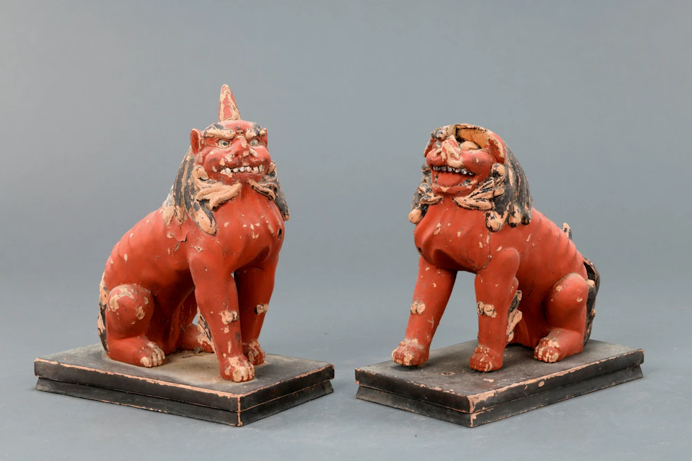 東別院町倉谷の稲荷神社には、鎌倉時代以来の獅子狛犬の姿を受け継ぎ、正統派の木造獅子狛犬像が伝来する。玉眼が嵌め込まれた眼からは、生気を放ち、今にも飛びかかろうとする躍動感が伝わる。口を開けた獅子は、右前足を踏み出し立ち上がる寸前の姿である。一方、口を閉じた狛犬は、背筋を伸ばし姿勢を正している。両像とも、筋肉の盛り上がりや肋骨の浮き出した様子からは、迫力を感じさせられることから、作者の優れた技量がうかがわれる、力のこもった像である。