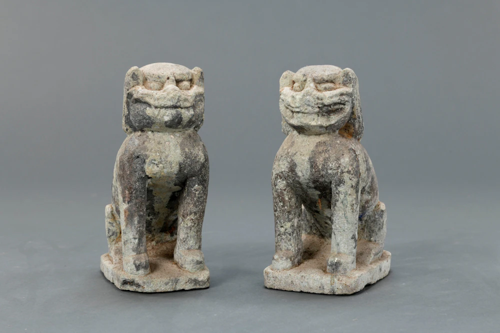 山階の天照皇大神社の石造獅子狛犬像は、福井県福井市で産出する笏谷石で造られた越前狛犬に分類されるものである。千代川町の月読神社に伝来するものと同種の物であるが、小型で、顔立ちやタテガミの仕上げが異なる。タテガミは、房状のストレートな髪を肩まで垂下させる。小さな尾は、背に貼り付け、前肢は直立させる。角は、吽形のみにみられる。この像は、天正七年(1579)の紀年銘を有する福井県若狭町の宇波西神社の作例に酷似する。