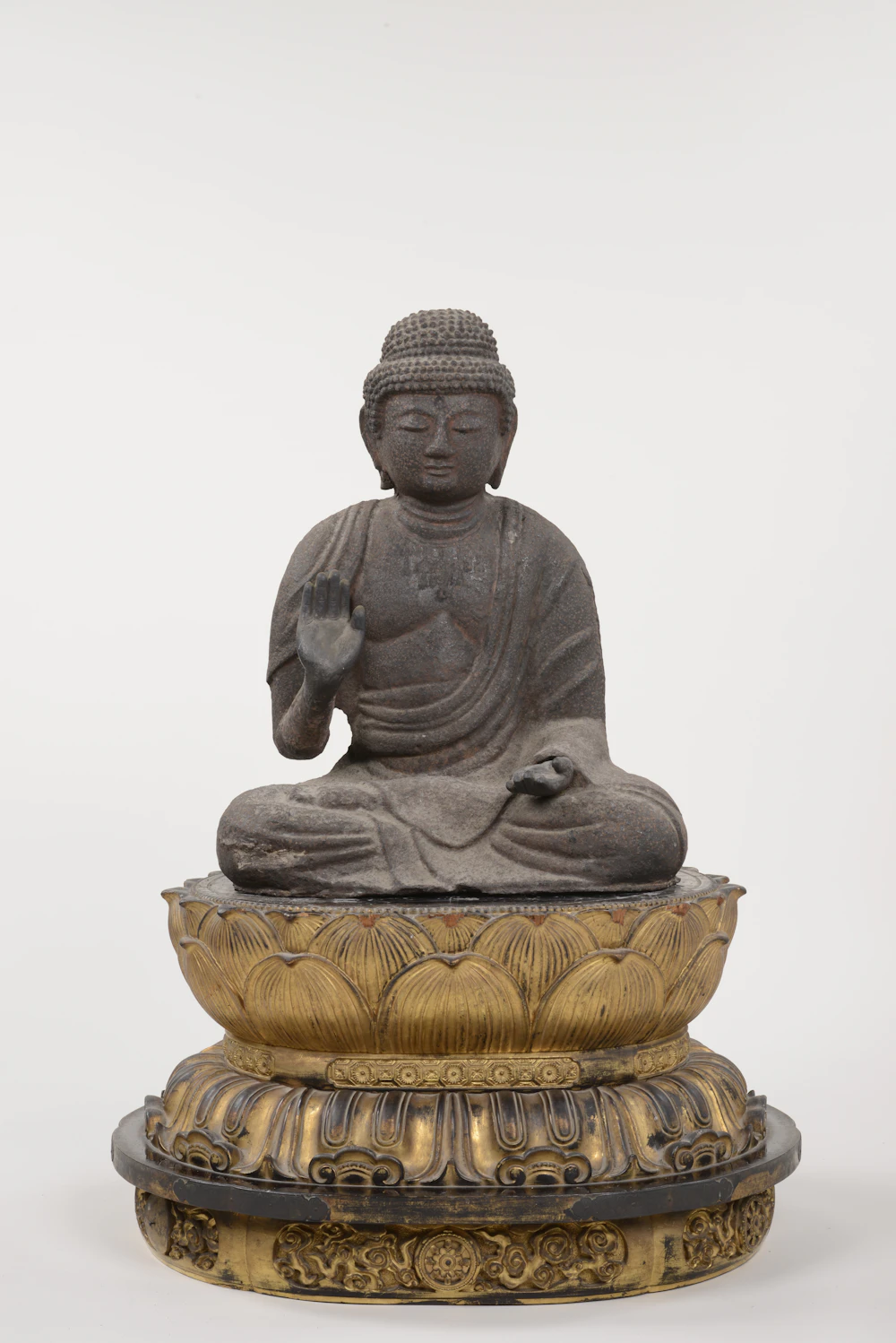 優しい顔立ちで、衲衣を偏袒右肩に纏う。右手を上げて施無畏印を示し、左手は掌を上に向けて膝上に置き、左足を前にして結跏趺坐する薬師如来坐像で、衣の襞を凸線で著している。その像容は、穏やかな定朝様の仏像である。同じ笵の鋳型から作られたとされる念仏寺の像は、もと比叡山にあった三体の内の一つとの伝承もあり、注目される。