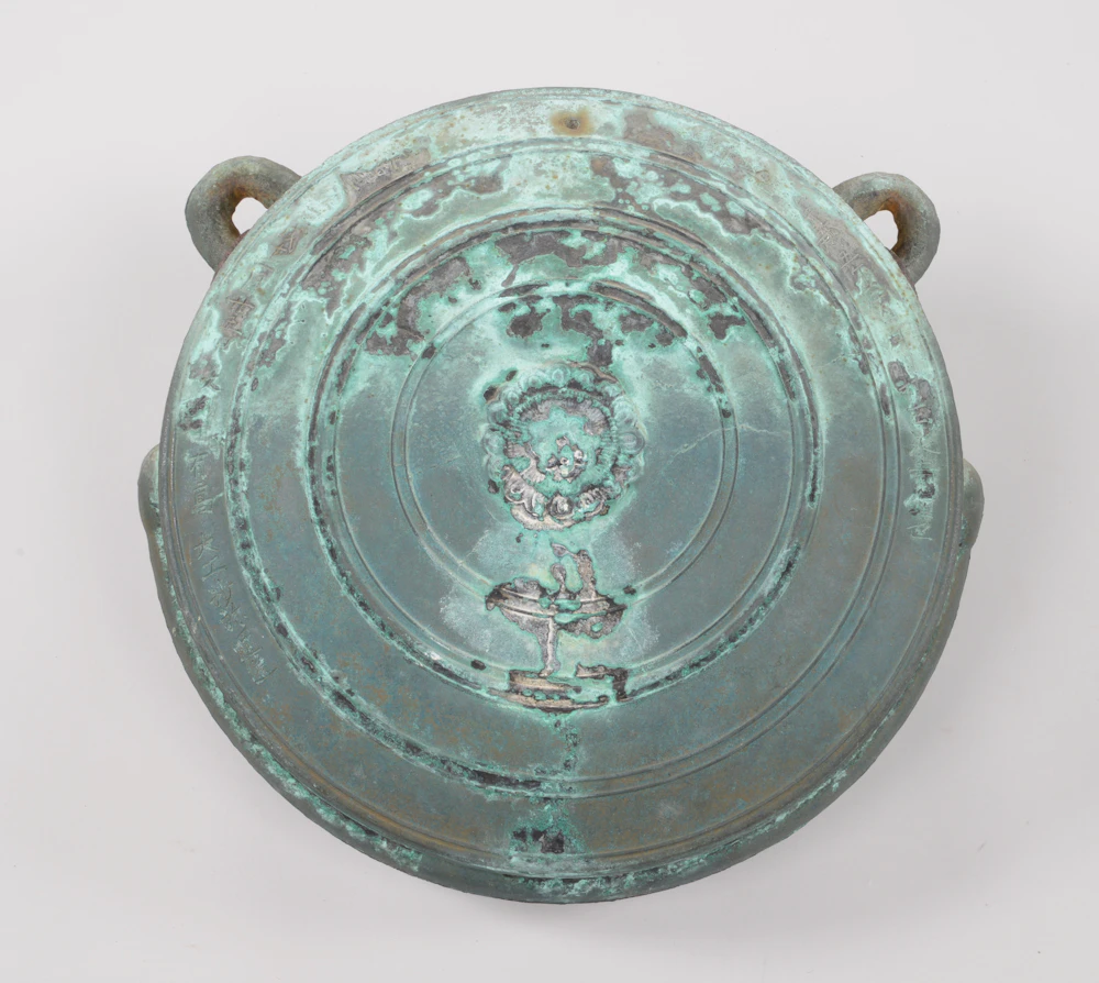 願主名・作者名・制作年代が判明する大型の鰐口として貴重である。鋳銅製で、表裏共に甲盛がやや高く、側面に鎬が無い。八葉複弁蓮華文で蓮実・蕊を陽鋳する撞座の径は8.5㎝、肩厚11.5㎝を測る。目・口唇の出は小さく、両肩に両面合わせ型の耳が残る。最外区の刻銘により、当鰐口は、丹波国船井郡五ヶ庄内河内村玉泉寺の鰐口で、永徳2年(1382)に平有高を願主として、大工沙弥円道が造ったことがわかる。なお、金輪寺に遷された経緯については不明である。
