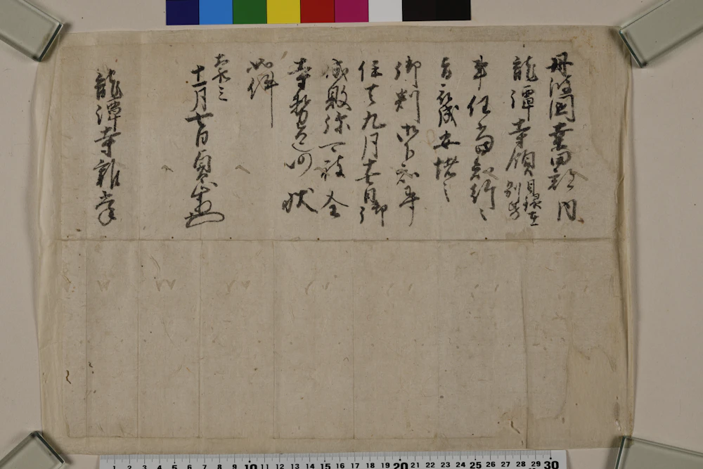 丹波国守護代の内藤貞正が龍潭寺の寺領を安堵した文書。文中にある「去る9月17日御成敗に任せて」を指す細川家奉行人奉書も残されている。