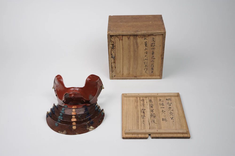 本能寺の変の際に、光秀の家臣として戦功のあった森一秀に下賜され、家宝として森家に代々伝わったものといわれている。甲冑に附属する顔を守る武具を面頬と呼び、顎から頬の部分を覆う場合を半頬という。森一族は、光秀没後、各地を転々として最終的には四国土佐にわたり、山内家の家臣になったといわれる。